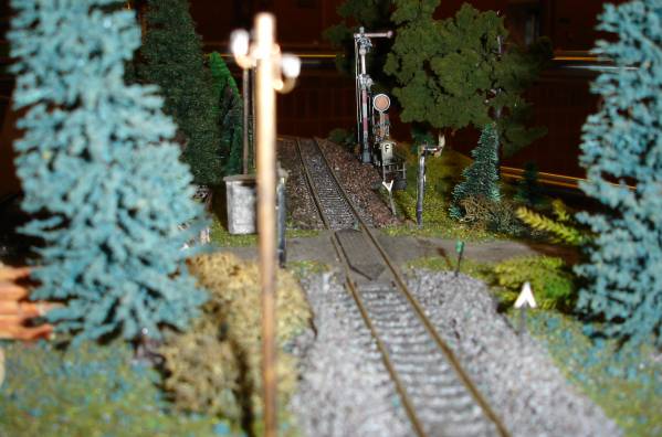 Anders als auf Anlagen, wo sich solche Szenen häufen, wird hier besonderen Wert auf detailreiche Gestaltung gelegt: sogar die Magnete der Zugbeeinflussung am Signal und deren Kabel werden nachgebildet.