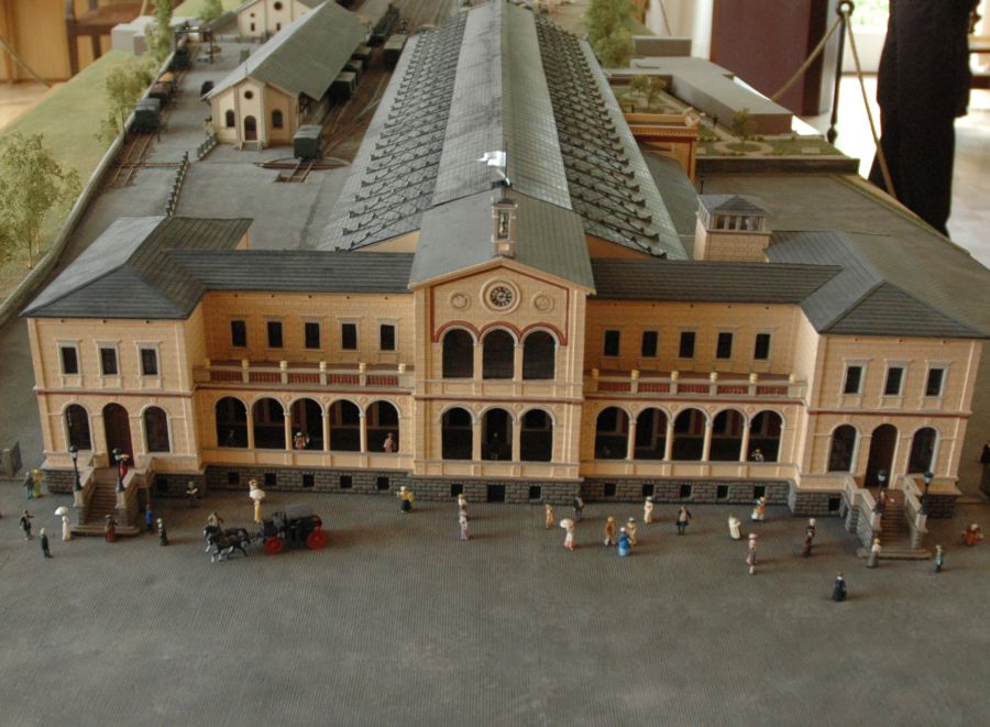 Dieses Modell des Ludwigs-Bahnhofs wurde aufgrund der Forschungsarbeit des damaligen Leiters des Unterfränkischen Verkehrsmuseums Prof. Dr. Hans-Peter Schäfer in den 1990er Jahren erbaut. Alle Details des Bahnhofs wurden exakt getreu der Originalpläne des Architekten Gottfried v. Neureuther im Maßstab 1:87 nachgebildet. Insbesondere bei den Lokomotiv- und Wagenmodellen handelt es sich um hochwertige Einzelstücke, die in Handarbeit gefertigt wurden.
