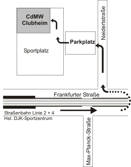 Linie 2 oder 4 (Zellerau) bis Haltestelle DJK–Sportzentrum; 5 Min. Fußweg bis zur Neidertstr.